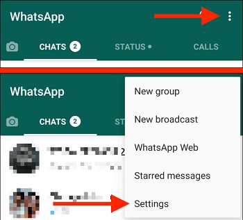 برای اینکار در واتساپ روی سه نقطه بالا تپ کنید سپس گزینه Settings و بعد از آن Chats را انتخاب کنید.