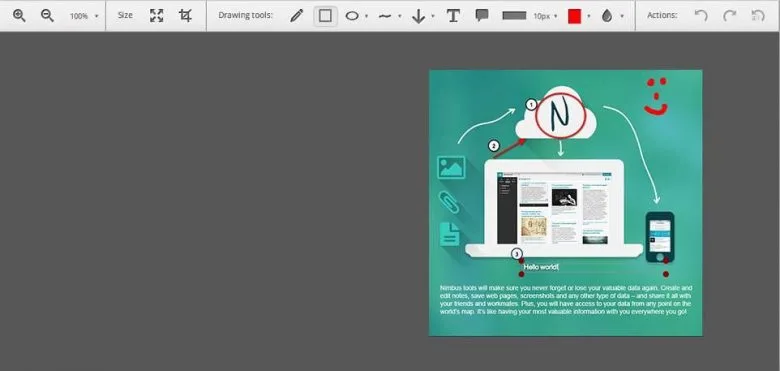 Nimbus یک ابزار ساده اسکرین شات و ضبط از روی مونیتور است که میتواند در بسیاری مواقع عصای دست شما باشد. شما بعد از گرفتن عکس یا ویدیو، میتوانید با ابزار ویرایش Nimbus، المانهایی نیز به آن اضافه کرده و کمی آنها را تغییر هم دهید.