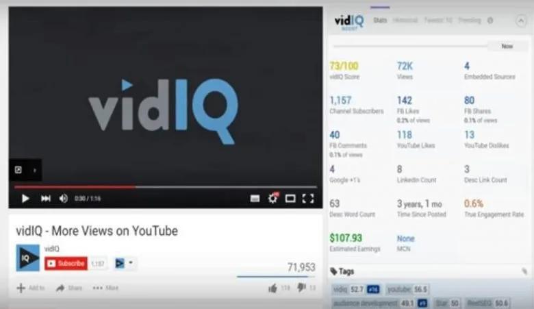 vidIQ Vision برای آنالیز و گرفتن گزارشهای مختلف در مورد کانال، ابزاری بسیار عالی است که به راحتی و به صورت آنلاین روی مرورگر در اختیار شما خواهد بود. شما با vidIQ Vision میتوانید ویدیوهایی که بهتر دیده شدهاند، میانگین زمانی که کاربران برای دیدن ویدیوهای شما صرف کردهاند و بسیاری پارامترهای مختلف را گزارش بگیرید و از آنها برای بهتر شدن عملکرد خود استفاده کنید.