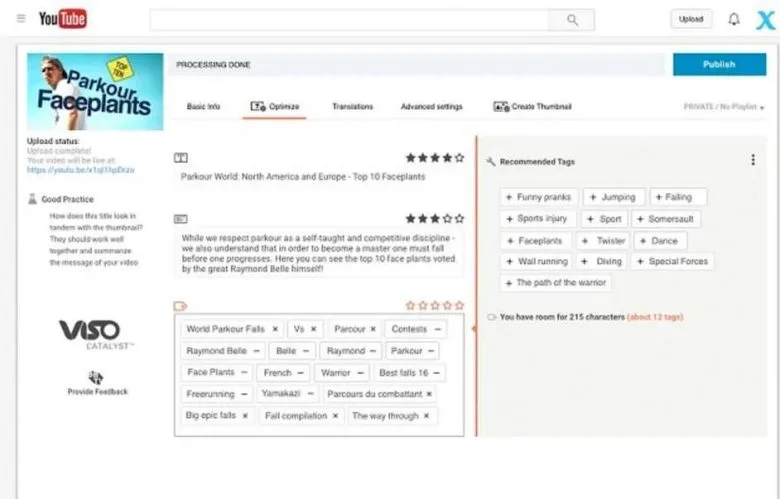 افزونههایی که در این لیست آوردهایم، بدون اشاره به VISO Catalyst کامل نخواهد بود. این پلتفرم به شما اجازه میدهد تا ویدیوهای محبوب را پیدا کنید و همچنین این امکان را به شما میدهد تا با گزارشهای مختلفی که میگیرید و آنالیزهایی که دارید، استراتژی بهتری برای کار خود بچینید. ابزارهایی همچون بهینه کردن عنوان ویدیو، ویرایشگرد تامبنیل، پیشنهاد کیووردهای بهتر و … نیز دارد که مجموع اینها یک افزونهی قدرتمند برای تولید کنندگان محتوا روی یوتیوب خواهد بود.