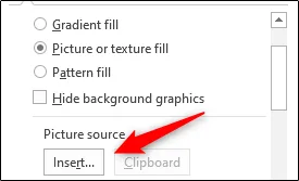 بعد از انتخاب این مورد، چند گزینه برای شما به نمایش در میآید. در زیر Picture Source حالا باید روی Insert کلیک نمایید.