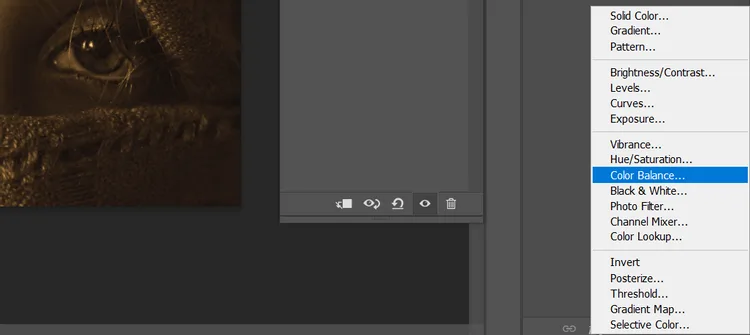 دوباره روی آیکون ساخت Adjustment Layer کلیک کنید و این بار Color Balance را انتخاب نمایید.