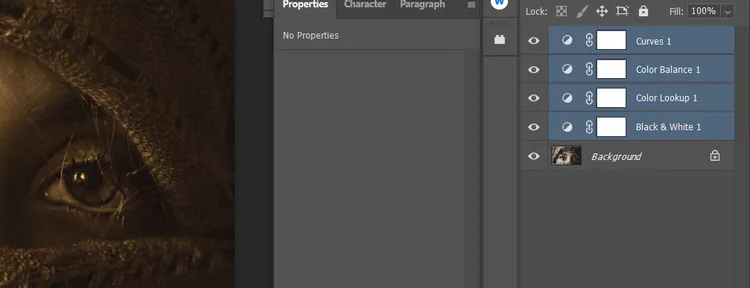 حالا با نگه داشتن کلید شیفت، روی Black & White کلیک کنید تا تمام لایههایی که بالای عکس اصلی ساختید، انتخاب شده باشند.