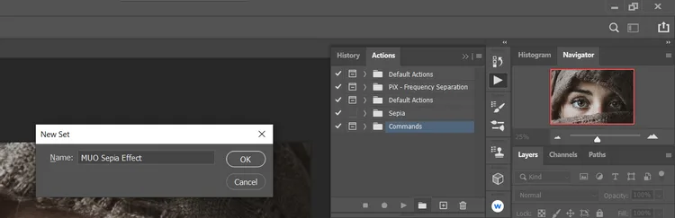 با دبل کلیک روی اسم پوشه، اسم آن را به Sepia Effect تغییر داده تا افکت خود را مشخص کنید و سپس اینتر بزنید.