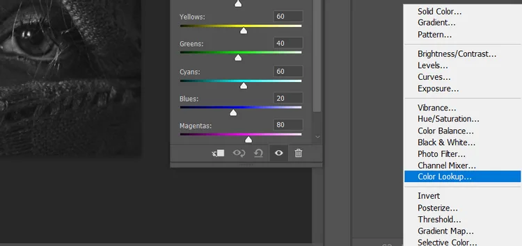 حالا دوباره یک بار دیگر روی آیکون ساخت Adjustment Layer کلیک کرده و این بار Color Lookup را انتخاب کنید.