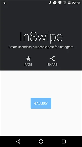 تمام این برنامهها ساختاری شبیه به هم دارند، پس در این آموزش ما به سراغ InSwipe در اندروید میرویم و اگر این مطلب را تا آخر دنبال کنید، میتوانید با باقی برنامهها روی iOS نیز کار کنید. بعد از دانلود برنامه آن را باز کنید و روی Gallery لمس کنید. البته شما میتوانید از Import from Camera Roll استفاده کرده و با دوربین در همان لحظه یک عکس پانوراما بگیرید.