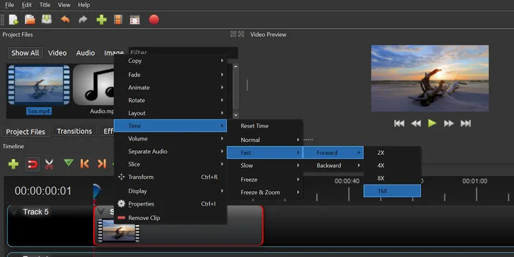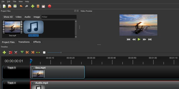 برای این کار شما باید هر دو فایل را به صورت جداگانه به OpenShot اضافه کنید. از File > Import Files یک بار ویدیو را اضافه کرده و بعد از کلیک راست روی فایل ویدیویی و زدن روی Add to Timeline، اولین بار مثلا Track 4 را انتخاب کنید و بار بعدی برای صدا، Track 5 را انتخاب نمایید. اگر میخواهید صدای ویدیو اصلی پاک شود، ابتدا مراحل بند قبلی را طی کنید و سپس ترک مربوط به صدا را اضافه نمایید.