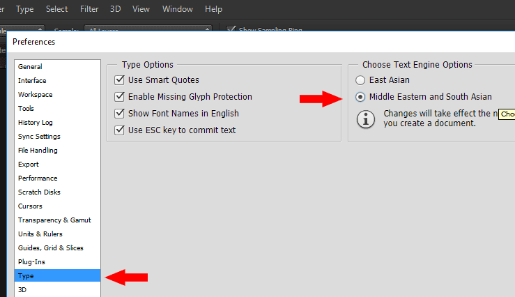 فتوشاپهای جدید همه فارسی را پشتیبانی میکنند و نیازی به چک کردن مورد بالا نیست. اما اگر هنگام نصب گزینه Middle Eastern Featuer را فعال نکرده باشید برنامه قادر به تشخیص تایپ فارسی نخواهد بود. برای فعال کردن این قابلیت ۲ کار زیر را انجام دهید: