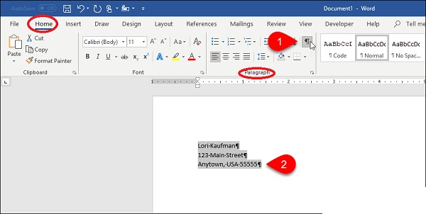 برای ایجاد اتو تکس در ورد و ذخیره قالببندی و فرمت متن، باید علامت پاراگراف را در آخر تمامی پاراگرافها بگذارید. هر گونه فرمت مانند Bold، Italic بودن کلمات با این کار در AutoText ذخیره خواهد شد. به سربرگ Home بروید و از بخش Paragraph روی علامتی که در تصویر زیر میبینید، کلیک کنید.