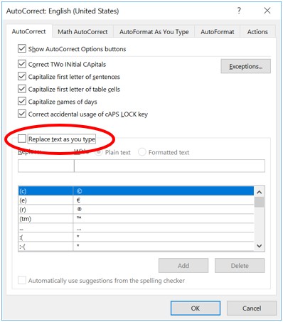 در ورد ۲۰۰۷ روی Officeکلیک کنید. سپس روی Options و پس از آن روی Proofing کلیک کنید. روی AutoCorrect Options بزنید. وارد سربرگ AutoCorrect شوید. حال تیک Replace text as you type را بزنید.
