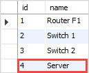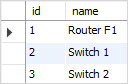 VALUES('Router F1'),('Switch 1'),('Switch 2');