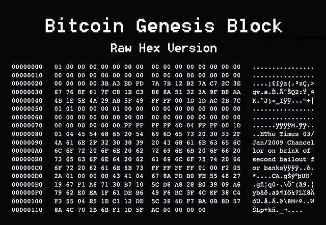 پیام جاساز شده ساتوشی ناکاموتو در بلاک جنسیس بیت کوین.