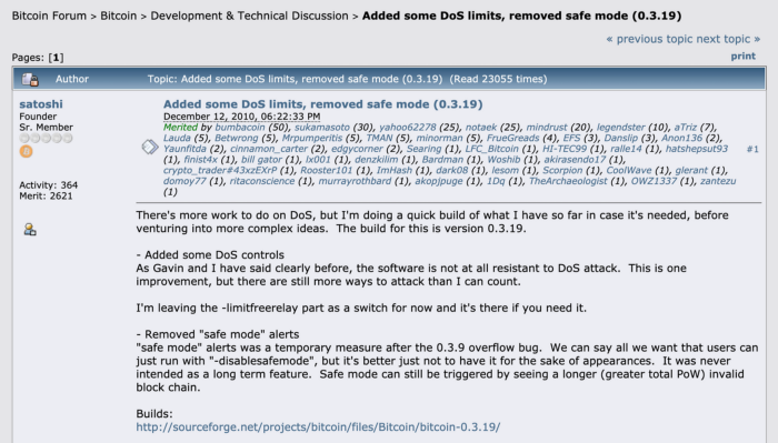 دسامبر ۲۰۱۰ و بعد از اینکه طرفداران ارزهای دیجیتال از ویکیلیکس خواستند بیت کوین را بهعنوان کمک مالی بپذیرد، ساتوشی ناکاموتو با ارسال پستی در فرومی مربوط به بیت کوین نوشت: