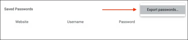 در این جا روی گزینهی Export Passwords کلیک نمایید.