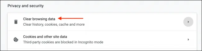 در بخش Privacy and Security، گزینهی Clear Browsing Data را انتخاب کنید.