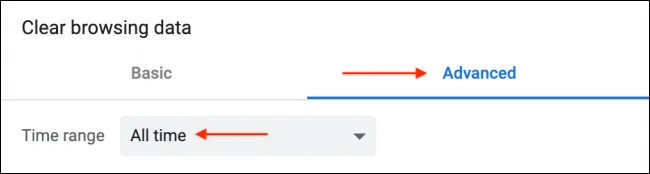 به برگه Advanced رفته و منوی کرکرهای جلوی Time Range را روی All Time قرار دهید.