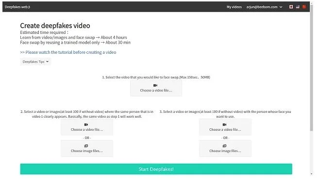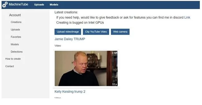 MachineTube یکی دیگر از وبسایتهایی است که به شما این امکان را میدهد تا ویدیوهای دیپفیک بسازید. MachineTube البته شبیه به Deepfakes web β از سیستمهای ابری برای این کار استفاده نمیکند و در واقع از دستگاه خود شما کمک میگیرد تا پردازش مورد نظر را انجام دهد. به همین دلیل شما نیاز به کارت گرافیکی که حداقل دو گیگ رم داشته و از نسل جدید باشد نیاز دارد. با این حال باز هم ساعتها برای نتیجه نهایی باید صبر کنید اما الگوریتم پیچیدهی MachineTube کار را به خوبی به سرانجام میرساند. نکتهی بسیار خوب درمورد این وبسایت کاملا رایگان بودن آن است، پس به راحتی بروید و از آن استفاده کنید.