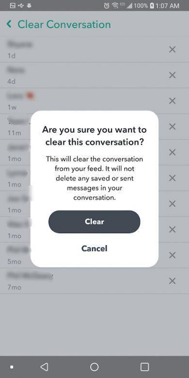 حالا با زدن گزینهی Clear، تایید کنید که میخواهید گفتگو حذف شود.
