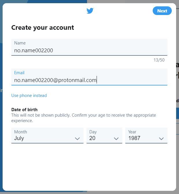 اسم، شماره تلفن و تاریخ تولد، گزینههایی هستند که شما باید طی کنید. اگر میخواهید به جای شماره تلفن از ایمیل استفاده کنید، روی گزینهی Use email instead بزنید.
