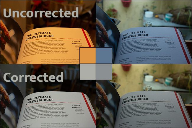 مثلا در عکسهای بالا، ورقهای کتاب برای ما همیشه سفید به نظر میآیند، در صورتی که زیر نورهای مختلف، آنها رنگ دیگری را بازتابش میکنند که باعث میشود، متفاوت به نظر بیایند. به همین دلیل رنگهای طبیعی، به شکلی طبیعی ثبت نمیشوند.