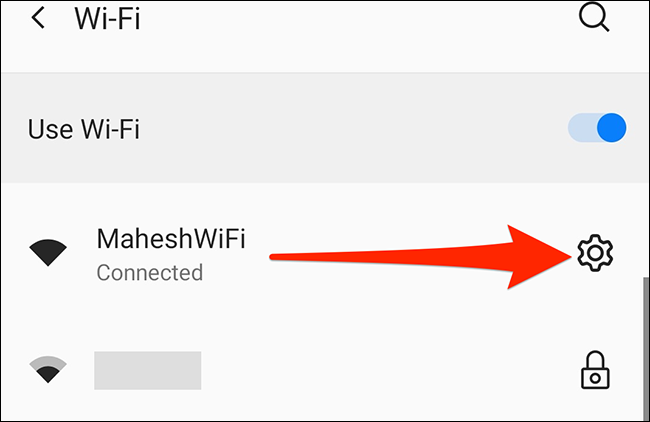 هنگامی که نام شبکهی مورد نظر را در فهرست دیدید، روی آیکون چرخدنده در سمت راست آن بزنید.