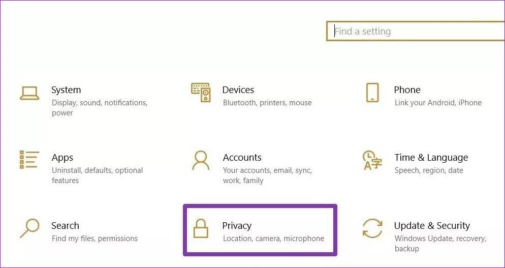 حافظه موقتی برای سرویس موقعیتیابی درون ویندوز ۱۰ وجود دارد که امکان حذف آن وجود دارد. برای شروع از طریق منوی استارت به بخش تنظیمات ویندوز بروید یا این که کلید ترکیبی Win+I را فشار دهید. سپس روی گزینه Privacy کلیک کنید.