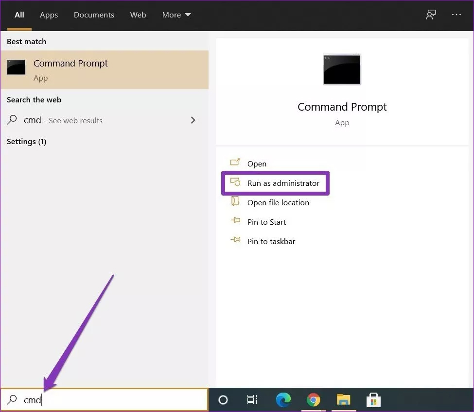 حافظه موقت DNS در رایانه، تاریخچه آدرسهای قبلی در ویندوز و مرورگر را ذخیره میکند. اگرچه ممکن است پاک کردن آن کمی دشوارتر از موارد قبلی به نظر برسد، اما قطعاً توصیه میشود زیرا در بلند مدت ممکن است فضای به نسبت زیادی را به صورت اختصاص دهد. در ابتدا منوی استارت را باز کنید و عبارت cmd را در نوار جستجو وارد نمایید. روی گزینه command prompt راست کلیک کرده و گزینه Run as administrator را انتخاب کنید.