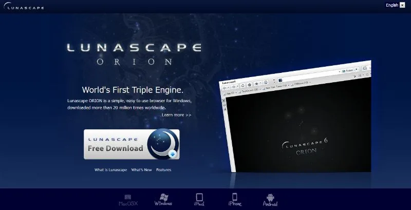 اولین مرورگری که به شما اجازه میداد تا بین سه موتور Webkit، Trident و Chromium سوییچ کنید. این امکان برای برنامهنویسانی که قصد صفحات وب را دارند موقعیتی فراهم آورده که در قالب مرورگری سبک به راحتی این کار را انجام دهند. Lunascape خیلی برای استفاده روزمره پیشنهاد نمیشود و بیشترین دلیل برای نصبش همین قابلیتی است که از آن یاد کردیم.