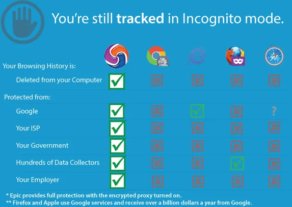 از اسم این مرورگر پیداست که بیشترین تمرکزش بر روی حریم خصوصی اینترنتی شخص است. پروکسی خصوصی خاصی در برنامه گنجانده شده و قابلیت جلوگیری از دسترسی سایتها به اطلاعات مرور شما از همان ابتدا در Epic Privacy Browser فعال است. حریم شخصی در این مرورگر به هیچ وجه یک گزینه انتخابی نیست و میتواند تنها دلیل استفاده از آن باشد.