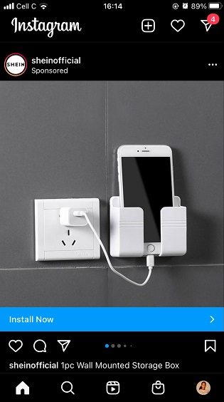 تبلیغات اینستاگرام در بخش فید اصلی و استوری کاربر نمایان میشود و در بالای آن واژه Sponsored وجود دارد. در بخش پایین آن نیز نام برند وجود دارد. علاوه بر این، دکمهای زیر پست قرار دارد که بر اساس هدف آن برند شامل یکی از موارد زیر میشود: