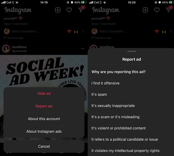 جلوگیری از باز شدن خودکار تبلیغات اینستاگرام با ریپورت کردن