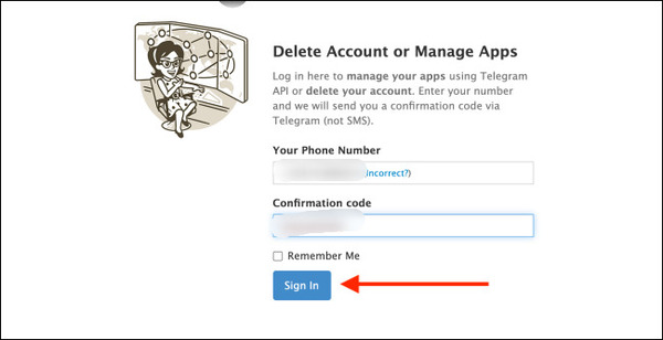 به سایت تلگرام برگردید. کد را در بخش Confirmation Code وارد کنید. سپس روی Sign in بزنید.