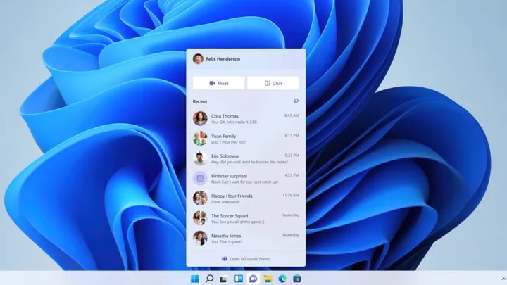 مایکروسافت تیمز به طور مستقیم درون ویندوز ۱۱ برای مشتریان عادی و سازمانی ادغام میشود. تیمز درون تسکبار قرار گرفته و میتوانید از آن برای برقراری تماس با خانواده، دوستان و همکاران استفاده کنید. چنین اقدامی متفاوت با رویکرد مایکروسافت برای ویندوز ۱۰ است که در آن از اسکایپ استفاده کرده بود.