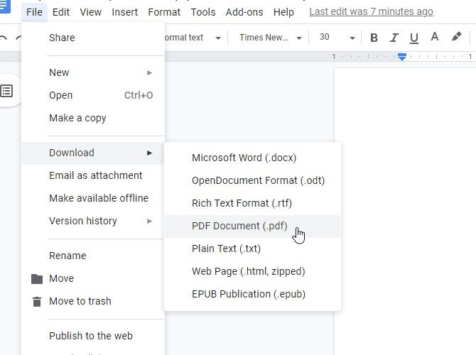 اگر یک فایل گوگل داکس دارید و میخواهید آن را به PDF تبدیل کنید، تنها کافیست آن را در گوگل داکس باز کنید و سپس به مسیر File > Download > PDF Document بروید.