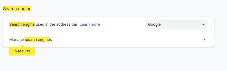 اگر چه خیلی از ما در حال حاضر از گوگل برای جستجوهای خود روی اینترنت استفاده میکنیم و موتور جستجوی پیشفرض این مروگرو نیز گوگل است، اما گزینههای دیگری هم هستند که بخواهید از آنها استفاده کنید. گزینههایی مثل duckduckgo یا یاهو یا خیلی جاهای دیگر. به این منظور باید به Settings رفته و Search engine را جستجو کنید.