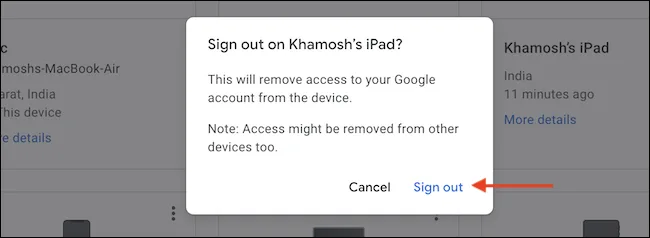البته قبل از این، گوگل از شما خواهد پرسید که آیا مطمئن هستید که میخواهید دسترسی دستگاه مورد نظر را به اکانت گوگل خود قطع کنید که با زدن روی Sign Out این کار را خواهید کرد.