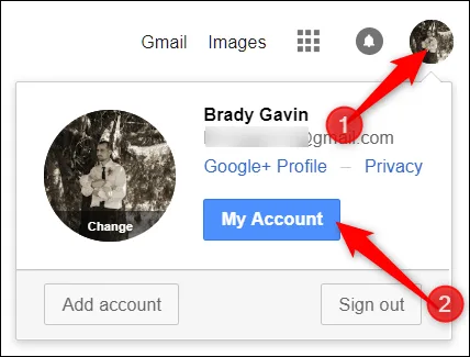 به صفحه اصلی گوگل رفته و دوباره روی آیکون پروفایل خود بزنید و به My Account بروید.