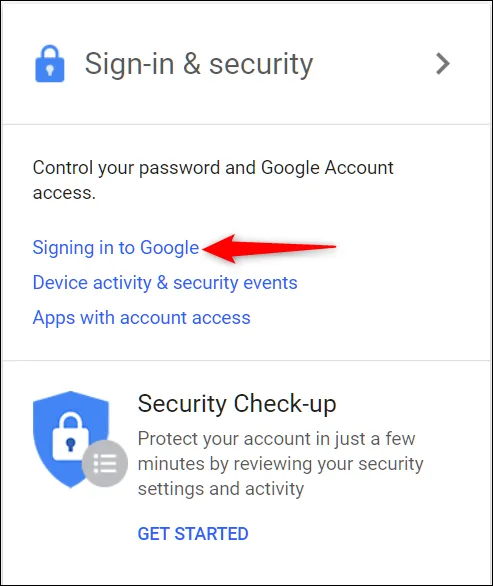 حالا Sign In & Securityرا انتخاب کرده و روی Signing In To Google کلیک کنید.