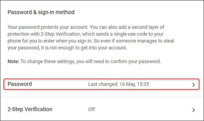 ابتدا باید پسوردی که در حال حاضر دارید را وارد کنید تا بتوانید به سراغ تغییر پسورد بروید. همچنین اگر پسورد دو مرحلهای را انتخاب کرده باشید، باید کد تایید را نیز وارد کنید.