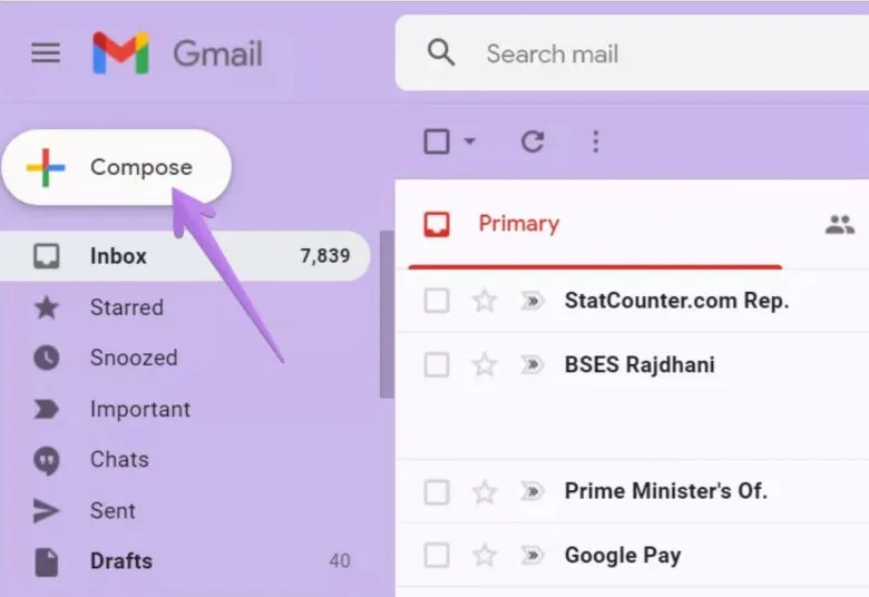 ابتدا بیایید با نسخه مرورگر در PC کار را شروع کنیم. برای این کار ابتدا مرورگر را اجرا کرده به Gmail بروید و روی آیکون Compose کلیک کنید.
