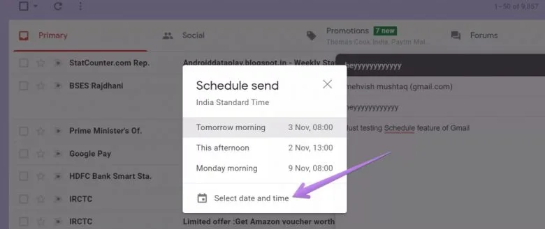 در این جا نیز میبینید که چند زمان از پیش تعیین شده را انتخاب کنید یا این که به Pick date and time رفته و زمان مد نظر خود را برای ارسال ایمیل انتخاب نمایید.