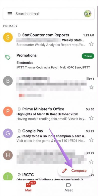 کار در نسخه موبایلی نیز خیلی سخت نیست و در نسخه اندروید و نسخه iOS انجام آن تقریبا به یک شکل است. ابتدا برنامهی Gmail را اجرا کنید و روی دکمه Compose لمس کنید.