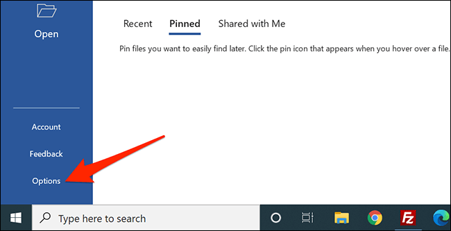 اپلیکیشن Word را بر روی کامپیوتر ویندوزی و یا مک خود اجرا کنید. در سمت چپ و پایین، “Options” را انتخاب کنید. اگر هم سندی را باز کردهاید، آنگاه باید منوی “File” را انتخاب کرده تا گزینه “Options” را مشاهده کنید.