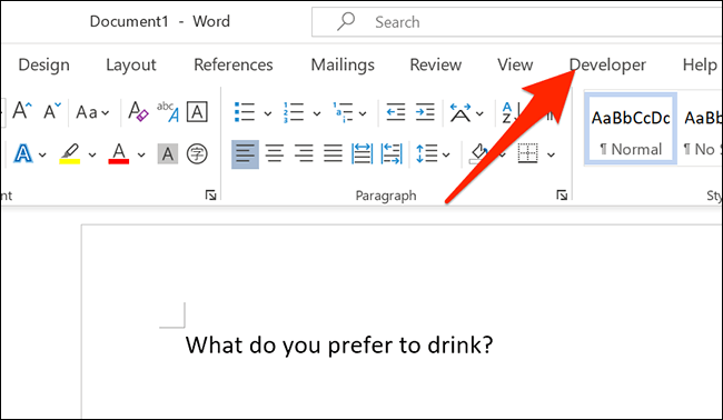 گزینه اضافه کردن لیست کشویی، در منوی Developer اپلیکیشن مایکروسافت ورد قرار دارد. این منو بهصورت پیشفرض مخفی شده است، بنابراین پیش از اینکه بتوانید یک لیست را اضافه کنید، ابتدا باید این گزینه را اضافه کنید.