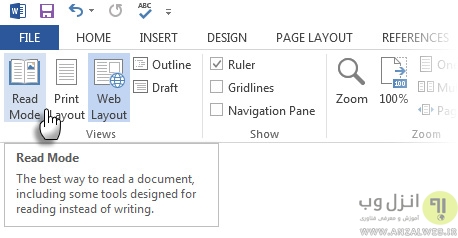 بخش دیگری که با جود آنکه قبلا در ورد ۲۰۱۰ معرفی شده بود،در ورد ۲۰۱۵ و ۲۰۱۳ بیشتر مورد توجه قرار گرفت،حالت مطالعه یا read mood می باشد.این حالت را می توانید با استفاده از کلید ترکیبی ALT + W-F فعال کنید.