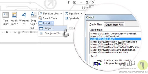 در باکس ظاهر شده، مطابق با شکل روی Microsoft Graph Chart کلیک کنید و سپس OK را بزنید.