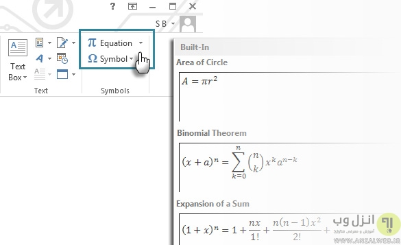 استفاده از فرمول ها،نماد ها و علامت های حرفه ای تخصصی ریاضی و.. در Word