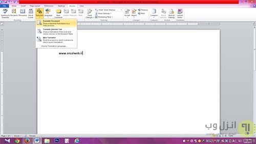بخش دیگری که در word میتواند بسیار کاربردی باشد، ترجمه ی سریع آن است که با استفاده از یک مرورگر به صورت خودکار مدیریت می شود.برای استفاده از ترجمه ی همراه word ، از تب Review و در نوار ابزار موجود ، گزینه ی Translate را انتخاب کنید.