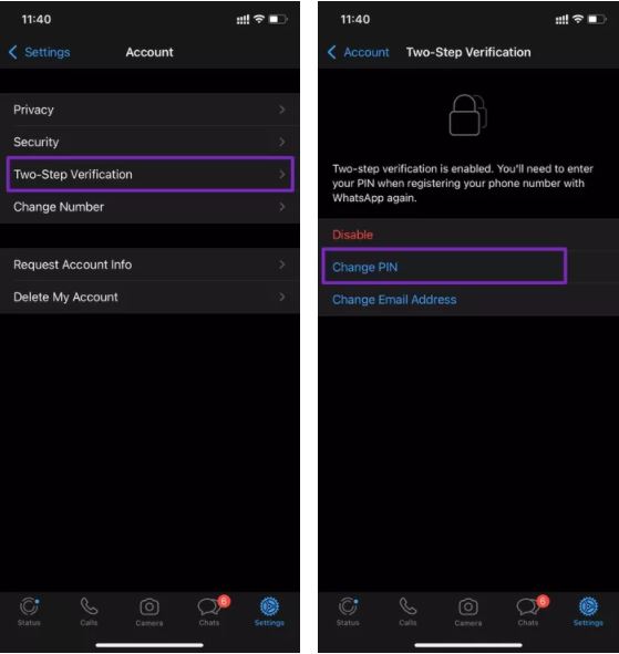 نحوه تغییر پین تایید هویت دو عاملی واتساپ
