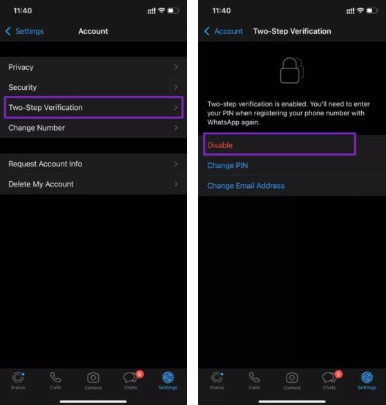با همین دو قدم قابلیت ۲FA واتساپ غیرفعال میشود، البته چنین کاری را به شما پیشنهاد نمیکنیم چرا که با احراز هویت دو عاملی امنیت حسابتان را افزایش میدهید.